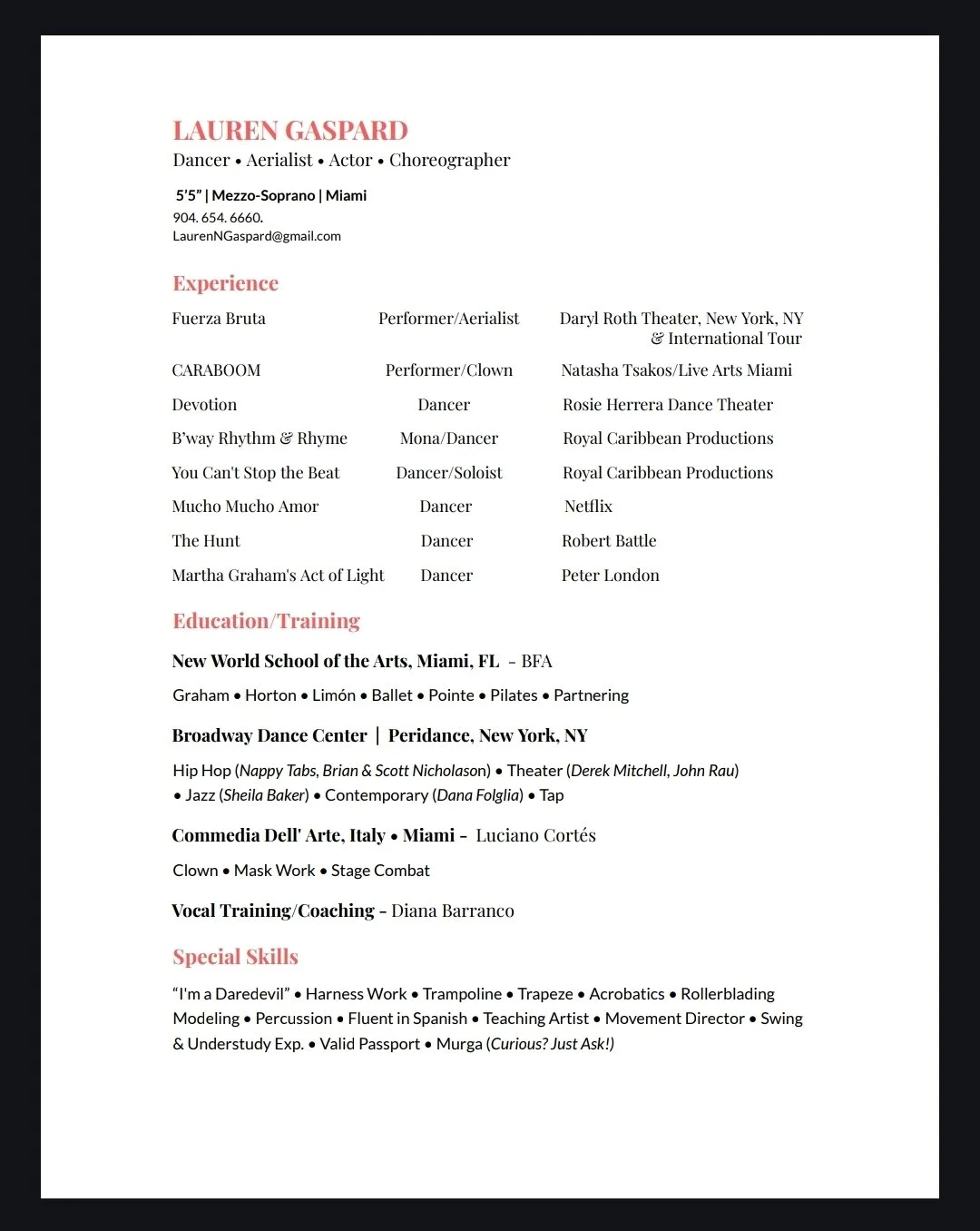 Dancer Life is movement. More Model Express Yourself. More Actor Tell your story. More RESUME ○ Stay in the Loop ○ Sign up to receive updates on Lauren and her offerings. Email Address Sign Up Your space and time will be respected Thank you for staying in the loop!